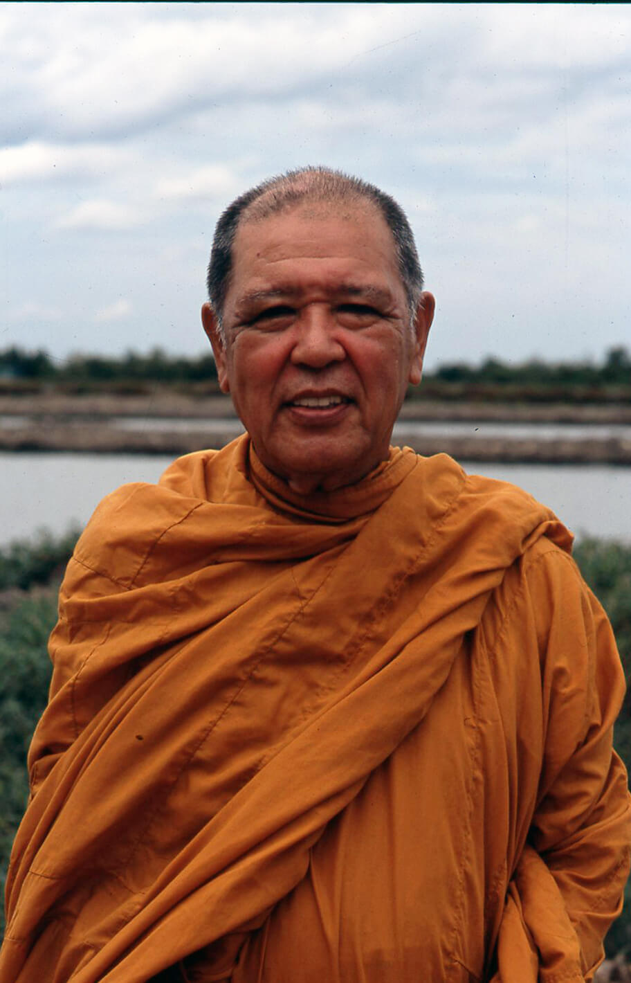 チンナワンソの本出家は、バンコクからタイランド湾方面に車で約1時間半ほど、マテガイの群生する砂州で有名な〝サムットソンクラーム(Samutsongkram)〟の寺〈ポムケウ寺(Wat Pomkeaw)〉で得度(とくど)式が行われ叶えられた。